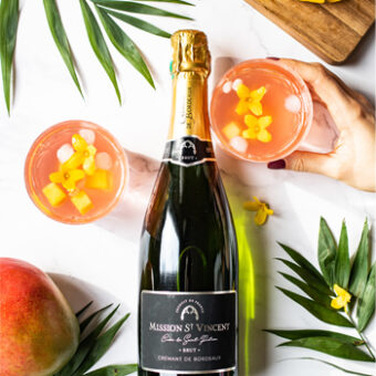 En cette période ensoleillée, quoi de mieux qu’un bon cocktail bien frais ? Je vous propose de découvrir la recette du Peach Fizz ! Le côté fizz grâce au Crémant de Bordeaux Mission St-Vincent et le côté gourmand et fruité de la pêche avec une liqueur ou du sirop !